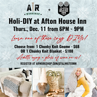 Join us December 11th from 6PM- 9PM DIY a Chunky Knit Blanket Or Chunky Knit Gnome at the Afton House Inn!